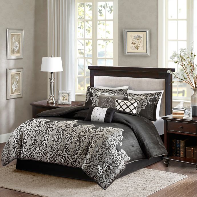 Black Comforter Set / Keira Comforter Set in Black/Blue | Bed Bath & Beyond / This black comforter set is made entirely using polyester and polyester blend.. Trying out a new style for your master bedroom? We researched the best comforter sets that'll instantly upgrade your bed with style and comfort. Or maybe you're decorating the guest bedroom to make. Black is one truly sophisticated color that could make anybody appreciate. A black comforter set is a great way to instill a sleek and modern atmosphere into your bedroom.
